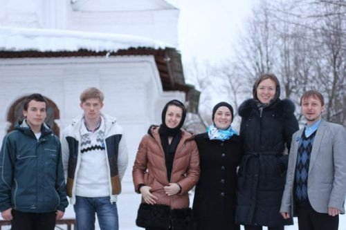 Общение молодежи началось со знакомства с храмом, об истории и святынях которого рассказал чтец храма – Михаил. Ну а уже в помещении Воскресной школы ребята образовали огромный круг, так как народу было много, в котором испытали себя на память и знакомство друг с другом в игре «снежный ком».