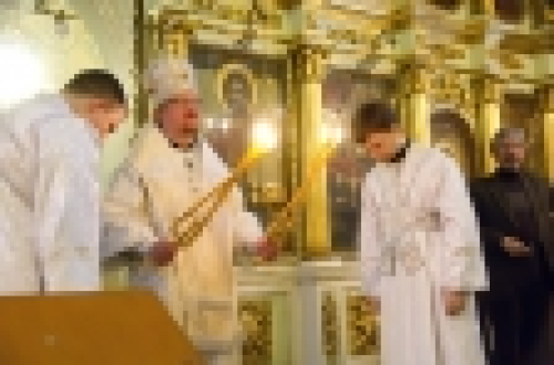 Епископ Бронницкий Игнатий в Крещенский сочельник совершил Литургию и чин великого освящения воды в храме Рождества Иоанна Предтечи на Пресне