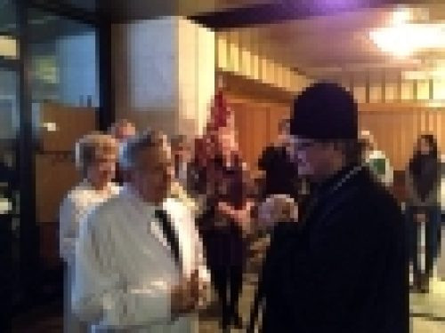 После обмена поздравлениями, традиционными рождественскими подарками и краткой беседы Владыка в сопровождении Е.И. Чазова, благочинного храмов Георгиевского округа протоиерея Серафима Недосекина, настоятеля строящегося храма прп. Алексея человека Божия протоиерея Леонида Кучерука и клириков благочиния посетил расположенный при кардиологическом центре домовый храм, освященный в честь св. прмц. вел. кн. Елизаветы.