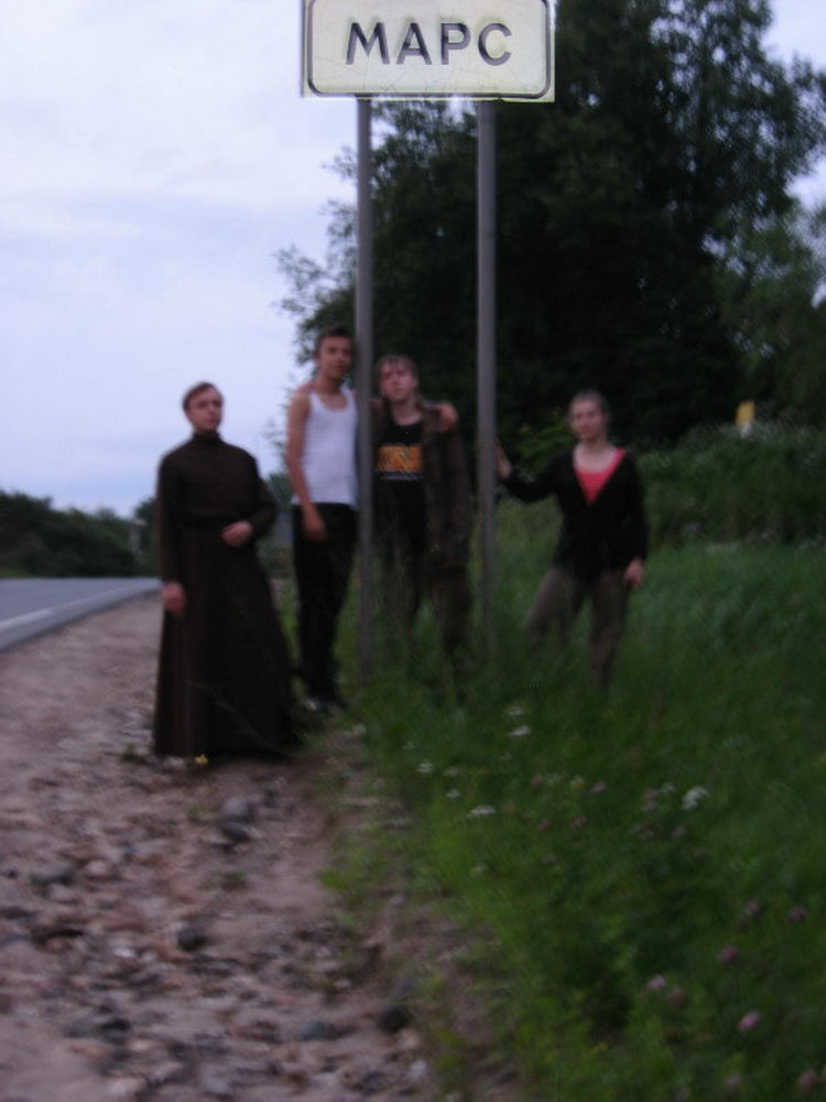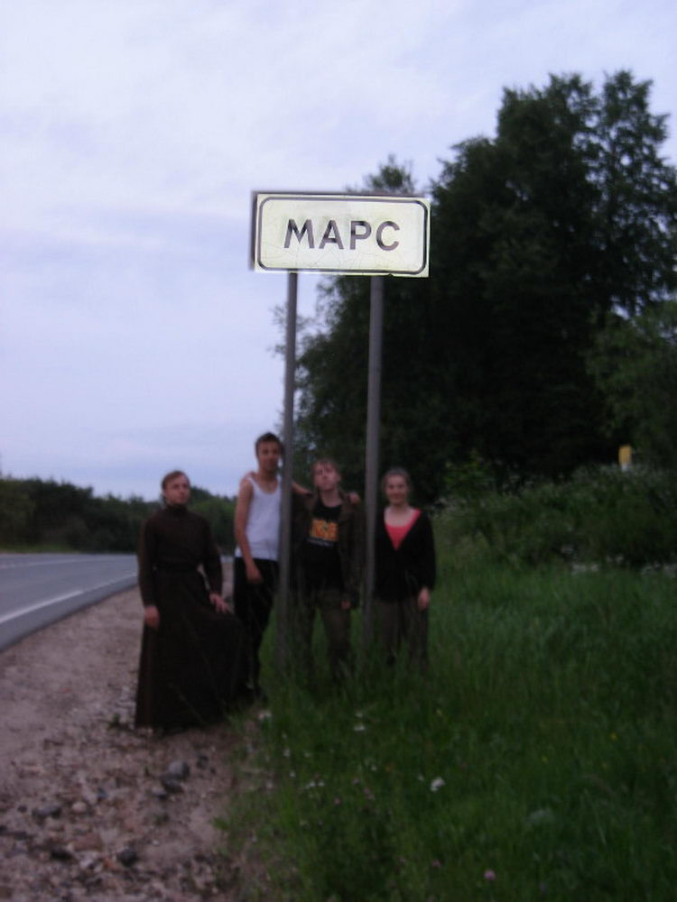 Рано утром, на память о пребывании на Марсе, участники похода решили сделать памятное фото, на котором запечатлена табличка, что место такое на земле (а именно в Подмосковье) есть!
