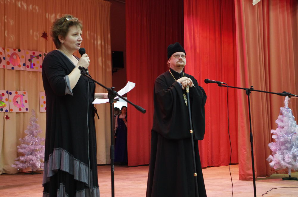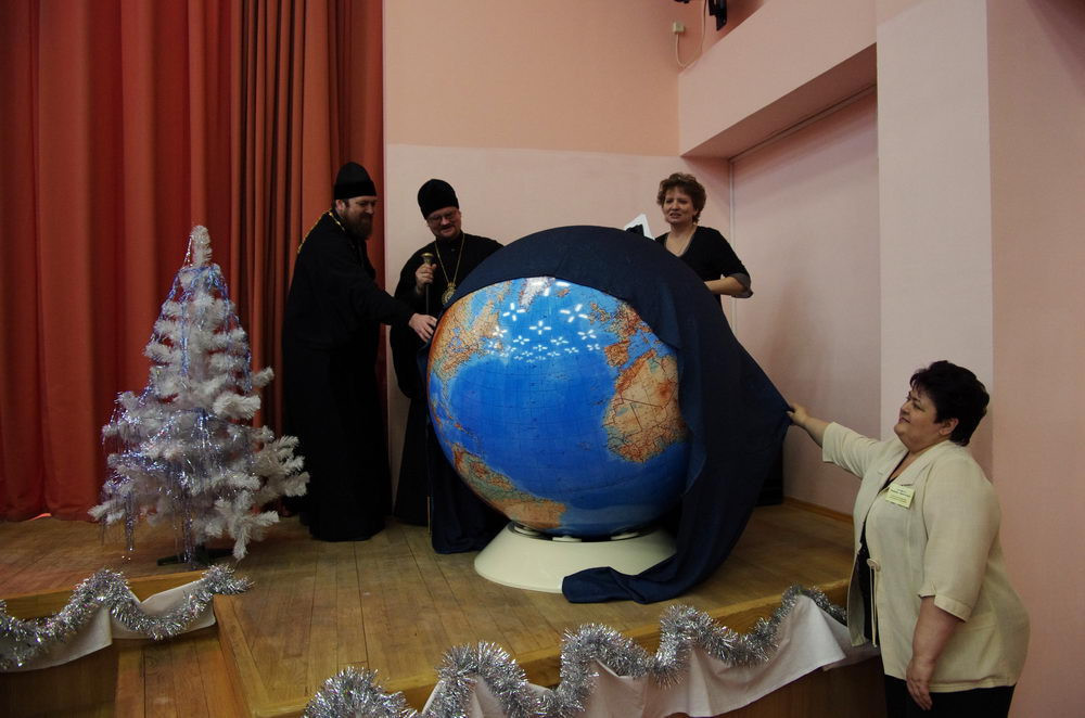Епископ Игнатий обратился к учащимся, педагогам и администрации интерната с приветственным словом, поздравил всех присутствующих со Святым праздником Рождества Христова и передал интернату подарок — большой глобус с физической картой мира.