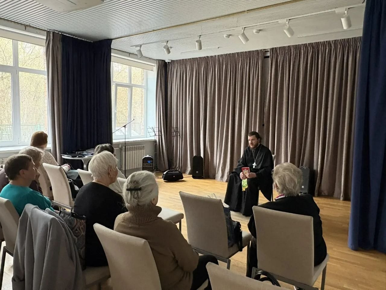 Клирики храмов Западного викариатства говорили с москвичами о Пасхе в Центрах московского долголетия